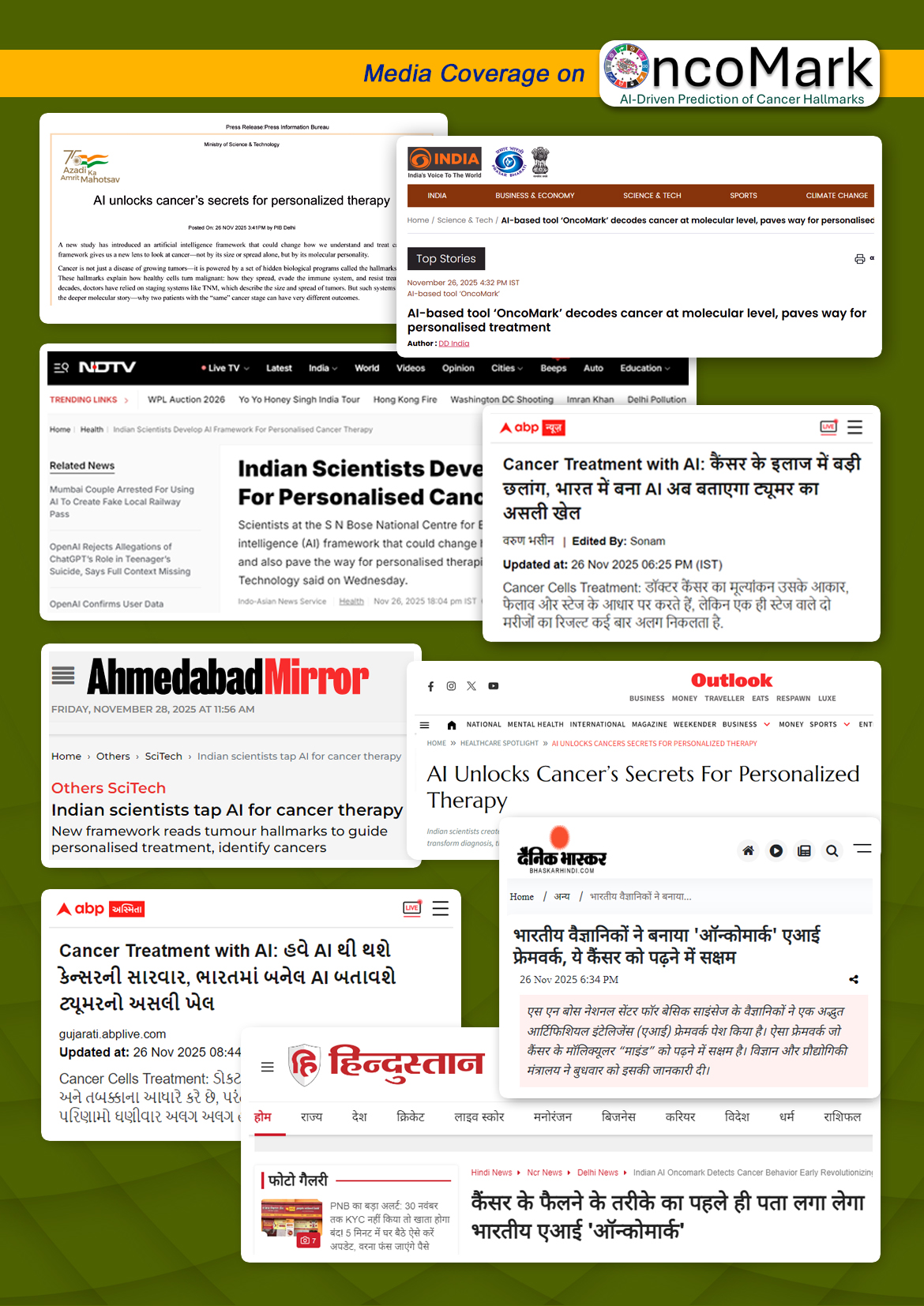 AI Breakthrough from Indian Scientists Could Change How We Understand Cancer Cancer isn’t just about tumour size or spread — it has a hidden “molecular personality” powered by biological programs called the hallmarks of cancer. These hallmarks decide how a tumour grows, evades the immune system, or resists treatment. Traditional staging systems often miss this deeper story. A new study from S. N. Bose National Centre for Basic Sciences (DST) in collaboration with Ashoka University has changed the game. Our team has developed the world’s first AI framework — OncoMark — that can read the molecular ‘mind’ of cancer. It analyses 3.1 million single cells across 14 cancer types to create synthetic “pseudo-biopsies”, helping us understand how hallmarks like metastasis and immune evasion interact to drive cancer progression. What did we find? OncoMark predicts hallmark activity with over 99% accuracy Works across real-world patient data (20,000 samples from 8 datasets) For the first time, we can visualize how hallmark activity increases with disease stage It can guide doctors toward drugs that target the active hallmarks in each patient It may help catch aggressive cancers early — even when they look harmless using standard staging